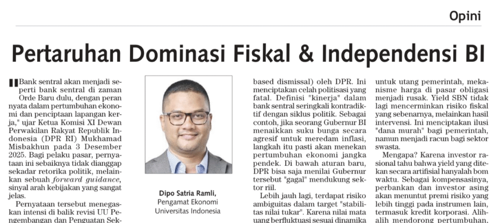 1. Pertaruhan Dominasi Fiskal dan Independensi Bank Indonesia. Kontan Insight – 29 Desember 2025