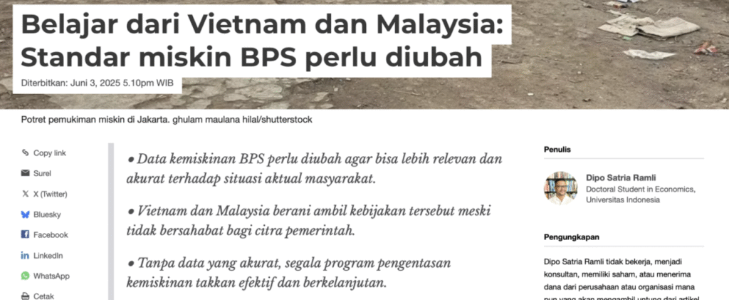2. Belajar dari Vietnam dan Malaysia: Standar Miskin BPS Perlu Diubah. The Conversation – 3 Juni 2025